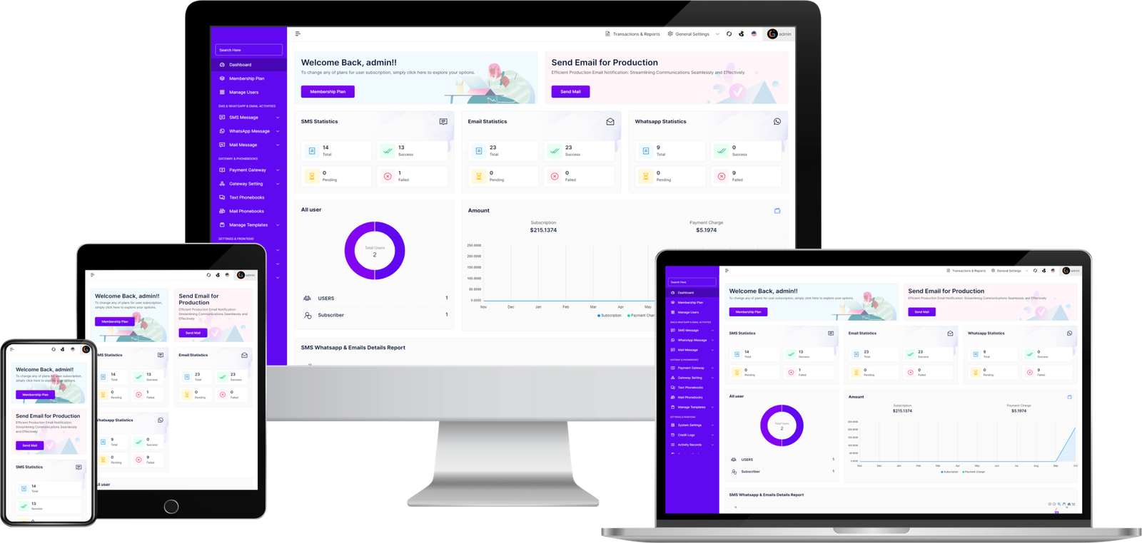 Discover a powerful and versatile Marketing solution designed to seamlessly manage communication channels. Our comprehensive platform combines the strengths of Bulk SMS, Email, and WhatsApp, ensuring an efficient and unified approach to messaging, catering to diverse communication needs with ease.
